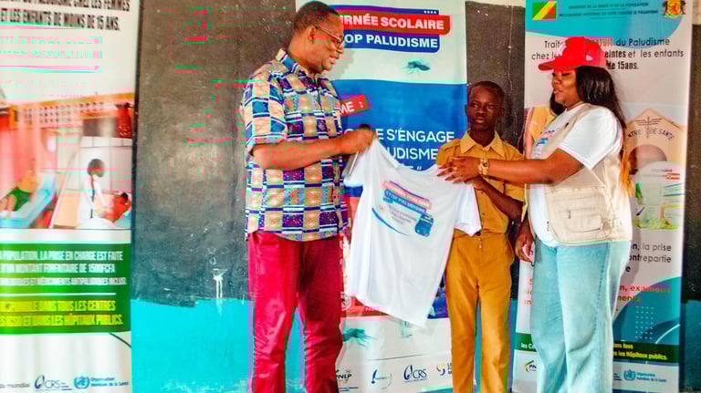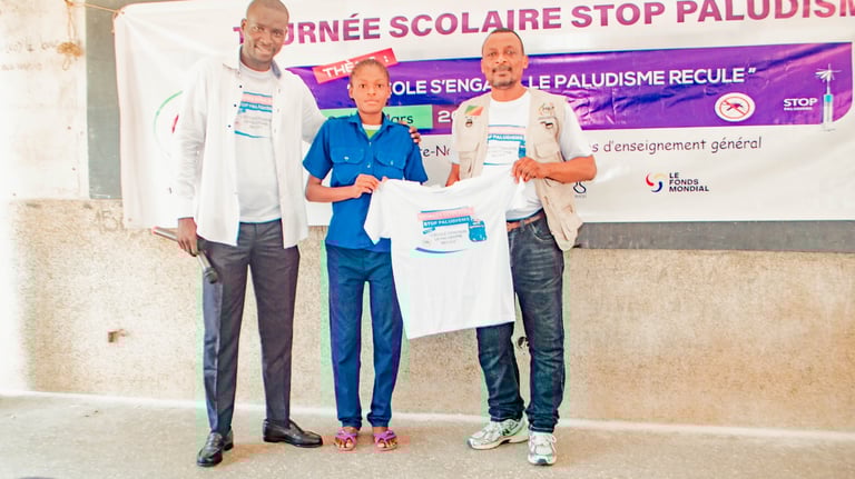 La Tournée Scolaire Stop Paludisme, qui s’est déroulée du 03 au 10 mars 2026 dans 15 établissements publics d’enseignement général de la ville de Pointe Noire ( Victor Augagneur, Honoré PAKA, Pointe Noire 2, Siafoumou, Vindoulou 1 et 2, Moé Poaty, Antoine BANTHOUD, 30 mars, Mbota Raffinerie, kwame Nkrumah, Ngoyo la plaine, Jean Félix Tchicaya, Les Trois Glorieuses, S. David KOUANGA MAKOSSO et BALOU Constant ), a connu une forte participation. Au cours de cette tournée de lutte contre le paludisme, près de 6 437 élèves, dont 3 449 filles (53,6 %) et 2 996 garçons (46,4 %) ont été sensibilisés en salle, et près de 17 000 élèves supplémentaires ont été atteints par le biais des dépliants distribués. Les directions d’établissements et enseignants ont également participé activement, assurant un relais pédagogique durable.