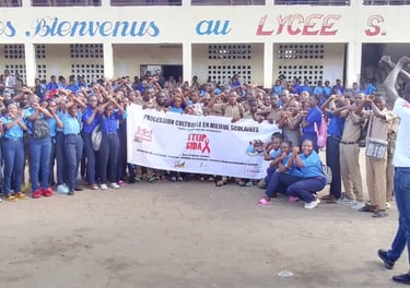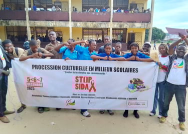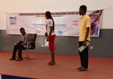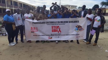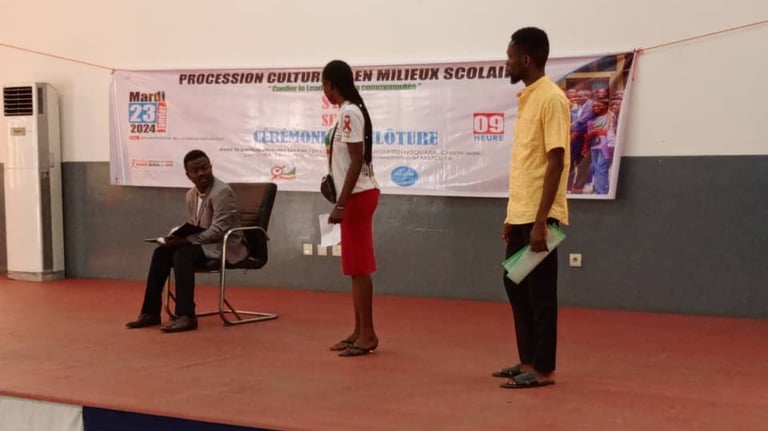 Le 23 janvier 2024 s’est tenue dans l’amphithéâtre du lycée de la Révolution la Cérémonie de clôture de la Procession Culturelle en Milieux Scolaire Stop Sida du 05 au 07 décembre 2023. Cette cérémonie avait pour but d’un côté de rendre d’une manière ostentatoire les activités de décembre rouge 2023 menées en milieux scolaires, et de l’autre, soutenir l’engagement communautaire juvénile en matière de lutte contre le VIH Sida.