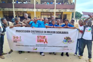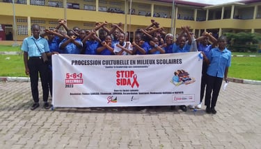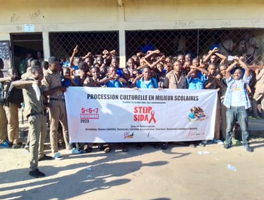 S’inscrivant dans le cadre des activités retenues pour « décembre rouge », avec pour point d’entame le 1er décembre ; date de la journée mondiale de lutte contre le sida, la Procession Culturelle en Milieux Scolaires Stop Sida est un espace de sensibilisation mis à la disposition des jeunes pour lutter contre le VIH Sida. D’autant plus, la couche la plus vulnérable face à ce fléau est celle dont la tranche d’âge varie entre 14 et 24 ans. Au regard de cela, cette activité a donc pour but de susciter dans la conscience des plus jeunes un éveil communautaire en matière de lutte contre le Sida. Tel est d’ailleurs le crédit du thème de la Journée Mondiale de Lutte contre le Sida pour l’année 2023: Confier le leadership aux communautés .