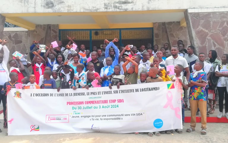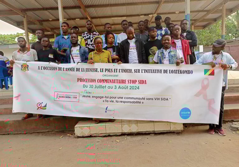 La procession communautaire stop sida du 30 juillet au 3 août 2024 a été une police sanitaire mise à la disposition des jeunes, afin que ceux-ci adoptent les comportements préventifs de lutte contre le VIH SIDA pendant les vacances. Cette activité initiée par Loatekombo Association Culturelle a été organisée sous les soutiens conjugués du Programme National de Lutte contre le SIDA et de l'UNICEF Congo. Elle s'est déroulée dans 9 Doyennés de l'archidiocèse de Brazzaville.